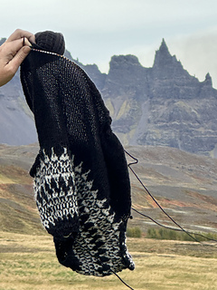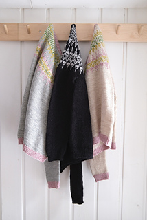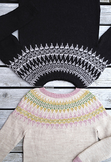 Drangar for kids is a top-down seamless circular yoke sweater with colorwork, inspired by the traditional Icelandic sweater. You cast on at the neckline and knit down following the chart. When the yoke is finished the sleeves are separated from the body by slipping stitches onto a holder or waste yarn and are knitted later. When the main body is finished, you transfer the sleeve stiches from the holder/waste yarn to a needle and pick up stitches from the armhole. Then the sleeves are knitted from the armhole to the wrist. It is easy to adjust the length.