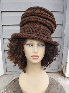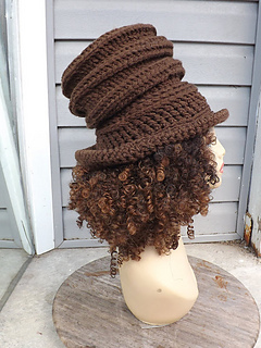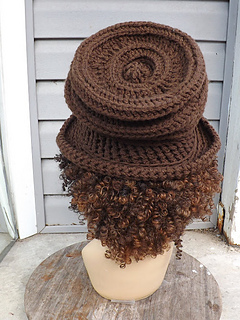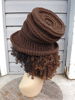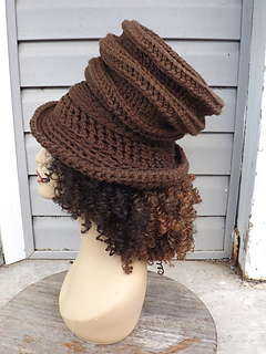This pattern is engineered for dreadlocks and high-volume hair. It is worked in one continuous piece from the crown to the brim using extended post stitches that create raised texture rings with built-in structure. The crown is intentionally tall and roomy, while the brim is firm and snug to prevent slipping caused by the added weight of dreadlocks.