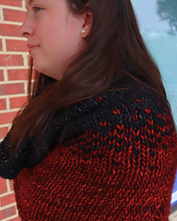 A remarkably fast, easy project made with two colors of super-bulky yarn, I envisioned flames and sparks ascending into the night sky as I created Drogon. He rests on your shoulders in a very comfy, cozy way, but the hood is long enough to protect you, if you need it.