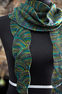 This is definitely a mindless addictive knit that goes nicely with any variegated yarn; either the short or long repeats. I have made four of these reversible shawlettes using fingering and worsted weight. The results are equally lovely!