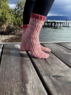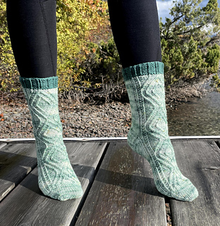 The Echoes of Erebor Socks is a cuff-down, textured and cable sock pattern for DK weight yarn. The cable pattern can be created without a cable needle and a video tutorial link is provided to demonstrate the method. The instructions are written for a mid-calf height sock; however, the pattern is customizable to your preferred leg length and preferred heel turn. A chart is provided for the design. If printing this pattern, see page 2 to determine which pages are needed for your size.