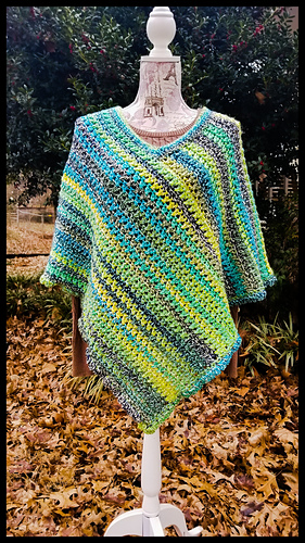 The Effortless Chic Poncho is the 3rd pattern in this series,,, The same, simple stitching technique is used throughout the Effortless Chic line…. Worked in two rectangles that are joined to form a fun and chic poncho, with a classic neckline and edging.. This Poncho will work up in just a few hours and be ready to wear on the next chilly day!