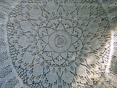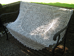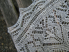 I am doing mine in Blue Moon Fiber Arts Silk Thread II in Winter Solstice. A strong yarn is recommended as this pattern is a large one with much wear & tear on the yarn.
