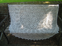 The shawl is a full sized round one inspired by Arwen’s Evenstar from Lord of the Rings. Shawl takes 1500 yards of laceweight, and requires an intermediate level of skill; no expertise required, just patience. Written & charted directions.