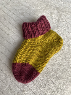 Están tejidos de la puntera hacia la caña con la técnica del magic loop. Tienen un motivo de elástico 2x1 en el empeine y la caña. El talón está construido con vueltas cortas alemanas y el cierre está hecho con la aguja lanera.