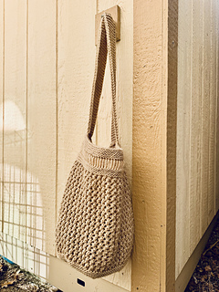 Handle is worked separately back and forth in rows, then sewn onto the tote.