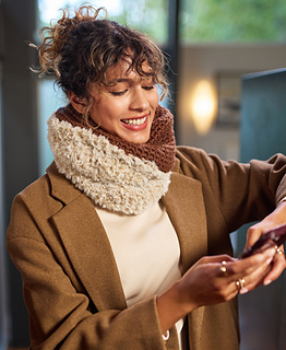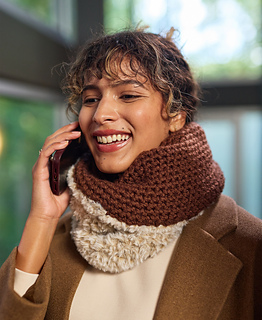 Cowl is worked in the round in continuous rounds in one piece. Place a removable marker on the first stitch of the round and move up each round. The outer part of the Cowl is worked with Faux Fur, while the inner portion is worked with Serenity® Chunky. The Cowl can be worn with either side facing outward.