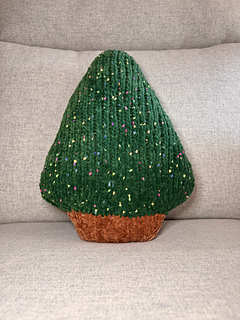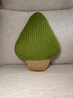 This pattern guides you through knitting a cozy, tree-shaped pillow worked in the round using the magic loop method. When made with super bulky yarn, the finished pillow measures approximately 40 cm in height. The size will vary depending on the yarn and needle size you choose.