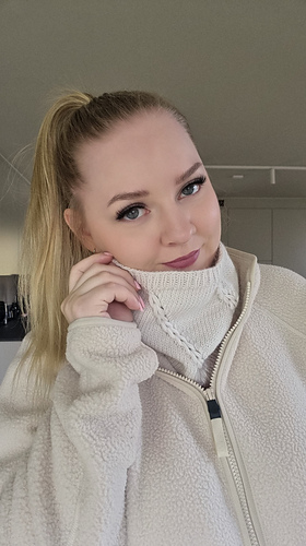 Fiola Neck er en moderne og tettsittende hals med et subtilt, men dekorativt flettemønster som går rundt hele arbeidet. Den kombinerer en klassisk vrangbord nederst med kreative dropped stitch-fletter som gir et luftig og tredimensjonalt uttrykk.