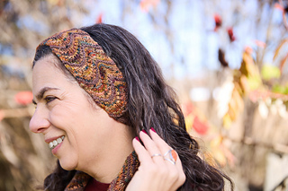 I’ve chosen two stunning shades of American Ewe Fingering Tweed, inspired by fall in the Fingerlakes. This soft to the skin tweedy yarn snuggles your ears perfectly!