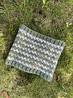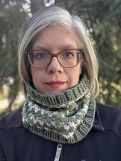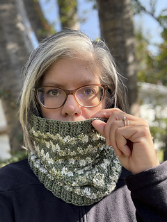 The Forest Spikes Cowl blends two colours using the granny spike stitch to create a textured fabric that reminds me of quiet winter forests.