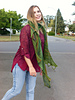 Forest Veil is a light and airy extra long asymmetrical shawl. This design features a subtly curved shallow shape, jagged edge and decorative horizontal slots at the bind-off end.