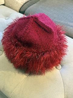 En enkel og varm pelslue strikket kun i rettmasker, med pene høyre- og venstrefellinger for en jevn og rund topp.