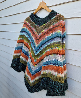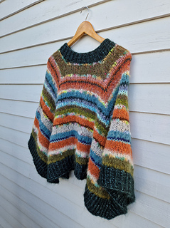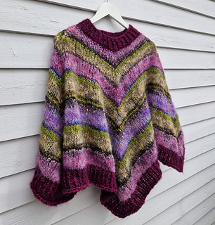 Én størrelse (men det er forklart hvordan du kan endre str). Stopp når du synes ponchoen er passe lang.