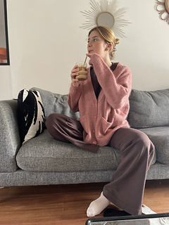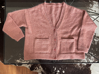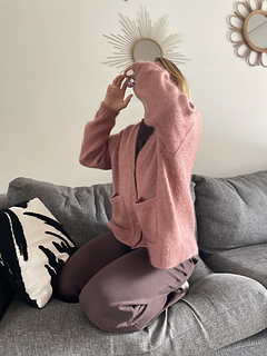 CARDIGAN COL V PROFOND, EFFET LOOSE ET PATTE DE BOUTONNAGE EN COTES MAILLES