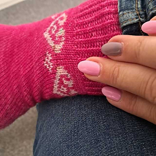 Gingerbread Heart Socks are sweet and playful toe-up socks decorated with a colorful stranded heart pattern reminiscent of gingerbread cookies. The simple stockinette background lets the heart motif stand out beautifully, while the construction ensures comfort and durability. They are knit toe-up using the Magic Loop technique on one long circular needle. The pattern includes a reinforced heel and a stretchy ribbed cuff for a perfect fit.