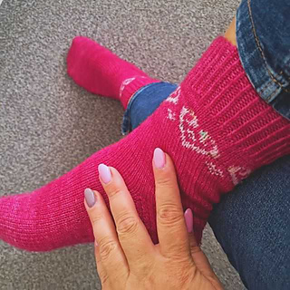 Ponožky Perníkové srdíčko jsou hravé ponožky pletené zdola nahoru (toe-up) s barevným vzorem srdíček, který připomíná zdobené perníčky. Hladce pletený základ nechává vzor krásně vyniknout, zatímco konstrukce ponožek zaručuje pohodlí i odolnost. Pletou se na magické smyčce (Magic Loop) na jedné kruhové jehlici. Návod obsahuje zpevněnou patu a pružný lem, který se dokonale přizpůsobí noze.