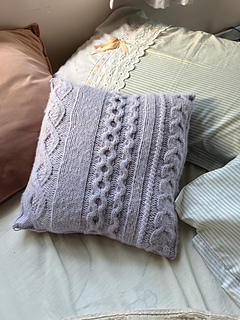 The Groovy Pillow is a chunky pillowcase with asymmetrical cables on the front and stockinette on the back.