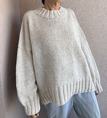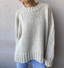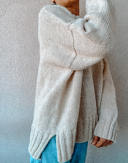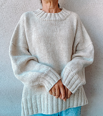 The Halva sweater is worked from the top down with an oversized fit, dropped shoulder and wide sleeves.