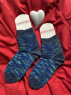 Ich stricke gerne Socken, aber mir fällt es oft schwer, die zweite Socke anzuschlagen. Socken mit einem durchgehenden Muster werden mir schnell zu langweilig. Mit den Happy Hippies sollte man sich auf die 2. Socke freuen, denn sie sind abwechslungsreich und fröhlich in Farbe und Muster. Im Original wurde eine nachträglich eingestrickte Ferse gearbeitet, die perfekt mit der Bandspitze harmoniert.
