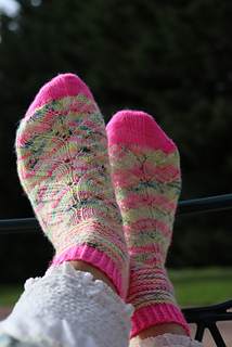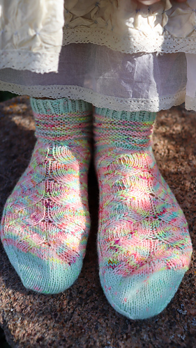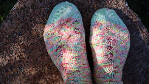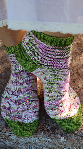 Diese Socken werden auf 2 Ndl mit der Magic Loop Methode gearbeitet.