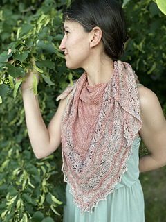 Haverhill is a two-color, top-down, triangular shawl. The upper body of the shawl is garter stitch and the lower body includes lace and bobbles. You can not work the bobbles if you choose.