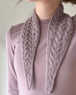 Skjerfet har en nydelig flettestruktur som er er gøy å strikke.