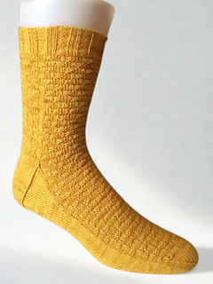 Skill Level: Adventurous beginner—These socks are patterned entirely with knits and purls. If you know basic sock construction