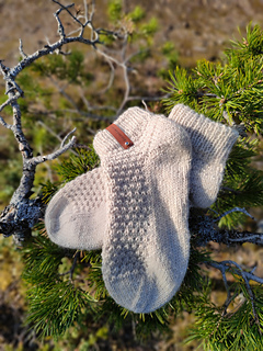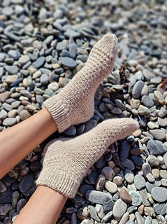 The socks are knitted on DPN’s from the shaft and down to the toe. If you prefer magic loop, use a circular needle. The Imoto socks have a double rib edge around the ankles. The heel is formed with short rows. I have used GSR (german short rows).