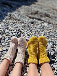 I have specified sizes S, M and L. Where S is suitable for those with narrow feet, M for those with normal foot width and L for those with wide feet. Foot length and width are not necessarily related, so I have separated them. If you have a narrow foot and size 39, knit according to size S and choose the length that fits your foot when you have come this far.