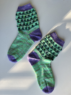 Ohjeessa on kolme eri jalanympärystä (S - M - L, 60-66-72 s, varren ympärysmitta 19-21-23 cm, terän ympärysmitta 16-18-20 cm). Sukan on tarkoitus olla varresta rento ja terästä napakan istuva. Varren ja terän pituus on helposti muokattavissa.