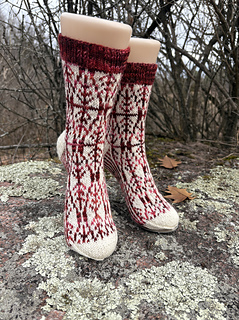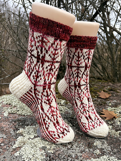 Size US 1 (2.25 mm) for the cuff/heel, US 2 (2.75 mm) double pointed needles (or size needed to obtain gauge)