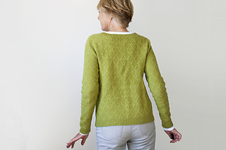 Shown in Chickadee by Quince & Co. (100% wool; 181 yds/ 166m per 50g skein); color: Bosc; 8(8, 9, 10, 11, 12, 13) skeins, approximately 1310(1448, 1600, 1780, 1925, 2050, 2200) yds/ 1200(1325, 1465, 1630, 1760, 1875, 2010) m.