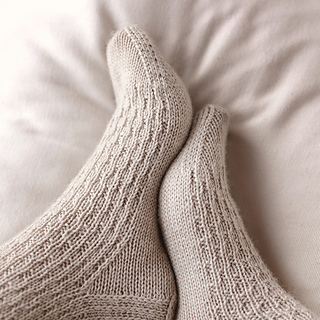 Die Socken werden nahtlos von oben nach unten gestrickt, beginnend mit einem einfachen Rippenbündchen, dass in ein schlichtes Muster übergeht, welches allein durch rechts und links gestrickte Maschen entsteht. Die Ferse wird in Hin- und Rückreihen gearbeitet und anschließend durch verkürzte Reihen geformt. Der Fuß wird bis zur Spitze in Runden fertig gestrickt, die Länge kann dabei angepasst werden.