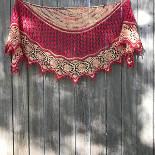 This shawl requires 2 colours of DK yarn in equal quantities. The pattern contains full written instructions with stitch counts, charts, and a tick-sheet. Information is also provided for increasing the size of the shawl and customising to different yarn weights. Please read the notes section for details and check out the finished projects on Ravelry.
