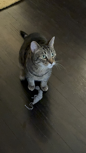 • LaPrawnda can be knit at any gauge-- use super bulky to make a jumbo shrimp, or sock yarn for a tiny baby prawn. (Using size 3 needles and DK yarn, LaPrawnda is about 2” from tail to nose.)
