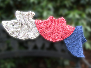Cowl 3: 200 g Katia North (75 m/100 g), (ca. 115 m Lauflänge); Nadelspiel oder Rundstricknadel 12 mm, 1 Zopfnadel