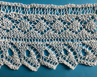 On page 26 of the book, this lace begins with 23 stitches and has a repeat of 12 rows.