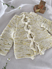 Lemon Twist is a seamless, raglan cardigan knitted from the bottom up in fingering yarn. It is predominantly garter stitch, but features: a deep, sculptured cable in the centre back; side shaping and faux slip-stitch side seams; and twists of cabled stocking stitch forming the front bands. The lower edge is curved naturally by the use of stocking stitch cables in a garter stitch fabric.