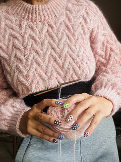 The sweater is designed to have 20–25 cm of positive ease. This means you should choose a size measuring 20–25 cm more than your own chest circumference.