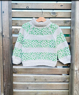 NB! Strikk prøvelapp i mønsterstrikk og glattstrikk, eller start på ermet og sjekk strikkefasthet! Får du flere masker enn oppgitt pr. 10 cm, bytt til tykkere pinne og sjekk igjen. Får du færre masker enn oppgitt, bytt til tynnere pinne og sjekk igjen.