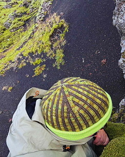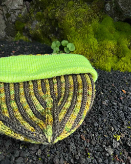 The hat is worked in the round from the bottom up. Starting with a single colour, which will later be folded inward to create a double layer over the ears. After that, the colourwork section is made slightly shorter befor folding so that the solid part forms a small edge at the bottom of the hat. The cast-on stitches are picked up and knitted together with the working stitches as you continue in pattern.