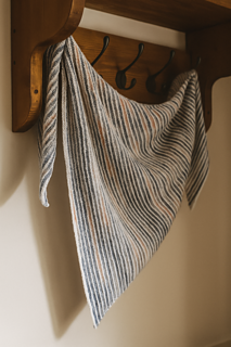 The result is a fabric where the busy beauty of hand-dyed colour is quietly tamed, framed by the steady simplicity of plain yarn. The asymmetric triangle shape grows steadily from one tip, creating a drape that’s soft, fluid, and endlessly wearable.