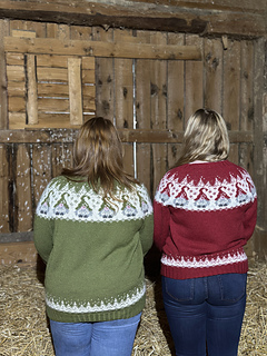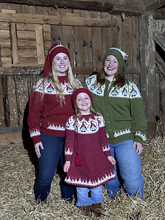 Mønster på jakke for voksne, genser og kjole for barn, luer og julestrømpe med samme mønster er tilgjengelig i min Ravelry butikk.