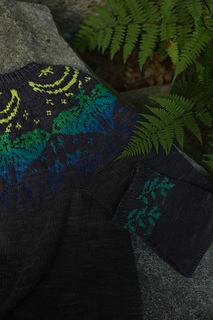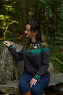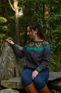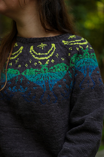 Luna moth is a top down stranded yoke sweater. The sizes are the actual bust sizes of the the sweater. If you want positive ease size up. If you want negative ease size down.