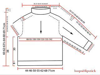 • The work is knitted from the top down with a saddle shoulders.
