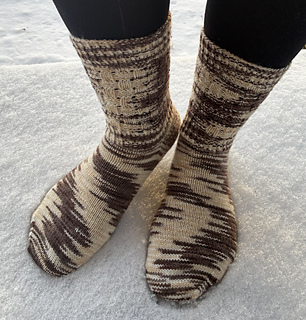 Koko 1 (2). Valmiin sukan ympärys jalkapöydän kohdalta venyttämättä on n. 20 (24) cm. Kengän koko n. 38-41 (42-45).