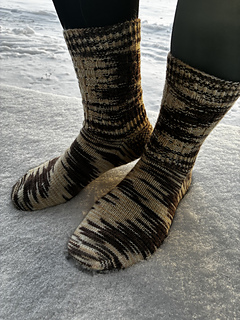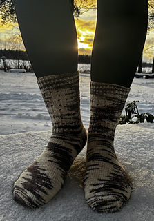 Lanka Fingering-vahvuista vahvistettua sukkalankaa (n. 400 m/100 g). Menekki 80 (90) grammaa.