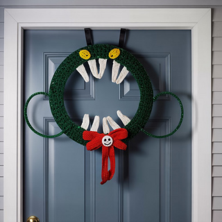Worsted Weight Yarn (Sample shown was made with Caron Simply Soft), 5.5 mm hook, Embroidery Needle, wreath form, popsicle sticks or cardboard (optional - to support the teeth), jar lid or bottle cap (optional - for the skull)