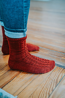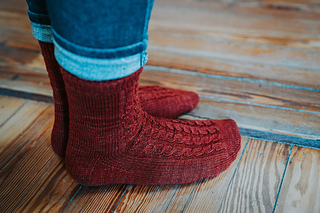 These socks are knitted from the cuff down, with a heel flap and gusset.